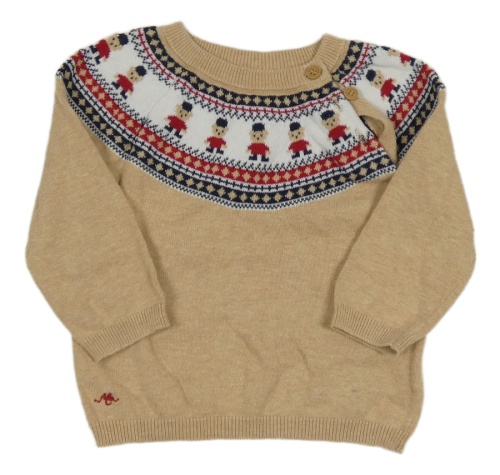 Béžovo-bílo-tmavomodrý vzorovaný svetr s medvídky Mothercare
