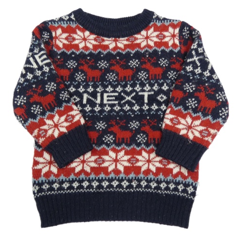 Tmavomodro-červený vzorovaný vlněný svetr Next