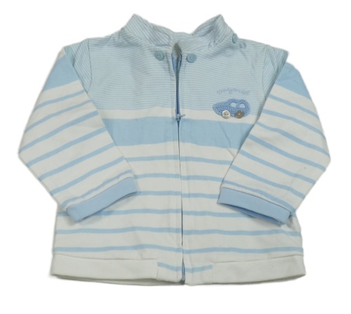 Světlemodro-bílá pruhovaná propínací mikina s autem Mayoral