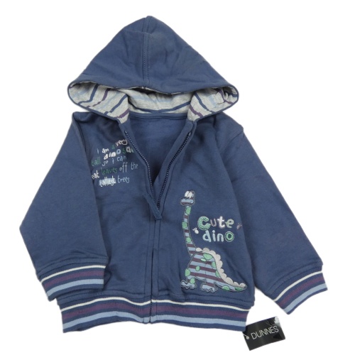 Nové - tmavomodrá propínací mikina s dinosaurem a nápisy a pruhy a kapucí St. Bernard