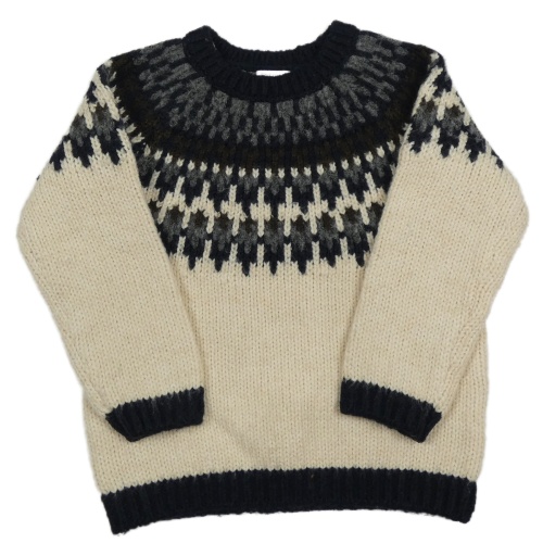 Béžovo tmavomodrý vzorovaný svetr F&F