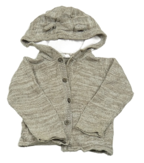 Kávovo-bílý melírovaný propínací svetr s kapucí s oušky lupilu
