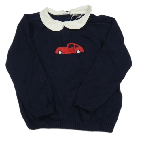 Tmavomodrý svetr s autem a límečkem Tu