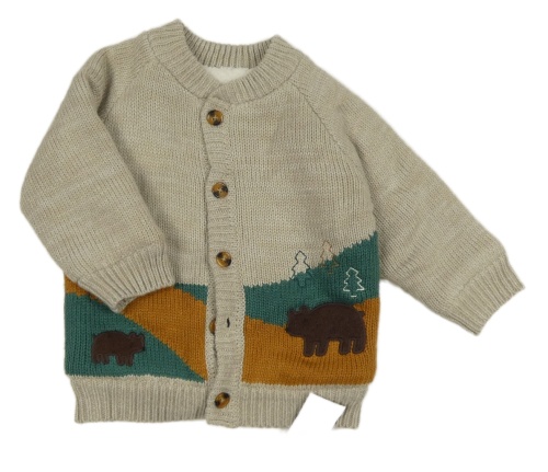 Nové - Béžovo-zeleno-okrový zateplený propínací svetr s medvědy Nutmeg