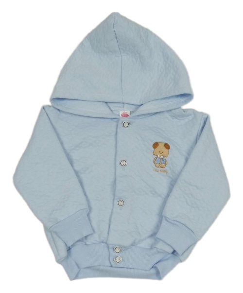 Světlemodrá vzorovaná propínací mikina s pejskem a kapucí