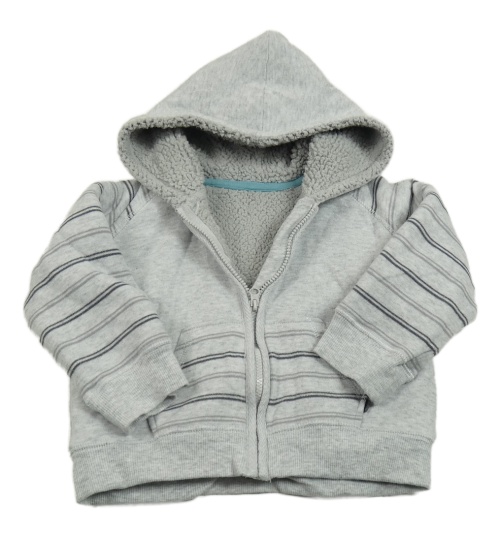 Světlešedá zateplená propínací mikina s proužky a kapucí George