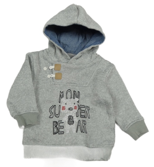 Šedá melírovaná pletená mikina s medvídkem a kapucí