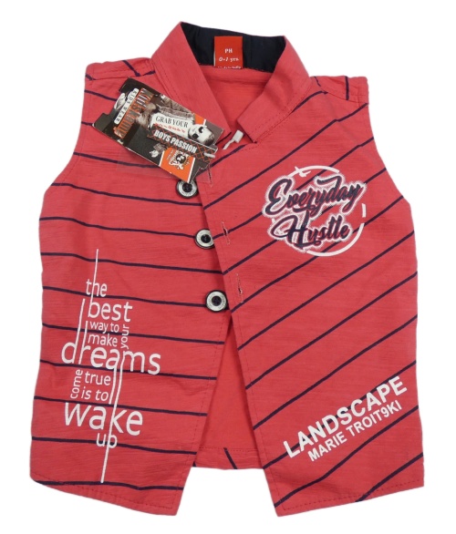 Nové - Růžovo-tmavomodrá pruhovaná vesta s nápisy