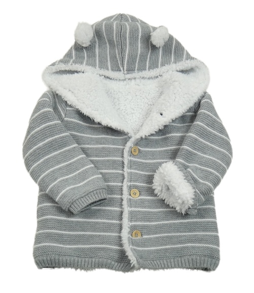 Šedo-bílý pruhovaný propínací zateplený svetr s kapucí s oušky Matalan