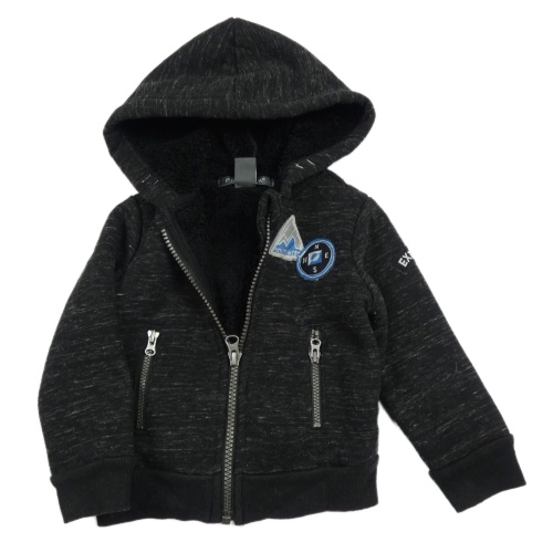 Černá melírovaná propínací zateplená mikina s nášivkami a kapucí PRIMARK