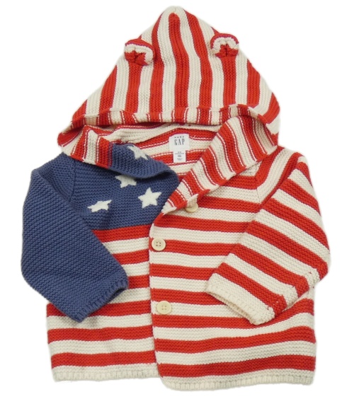 Červeno-bílo-modrý pruhovaný propínací svetr s hvězdičkami a kapucí GAP