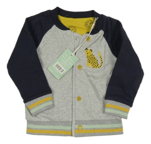 Nové - Šedo-tmavomodro-žlutá baseballová propínací mikina s kočkou Miniclub