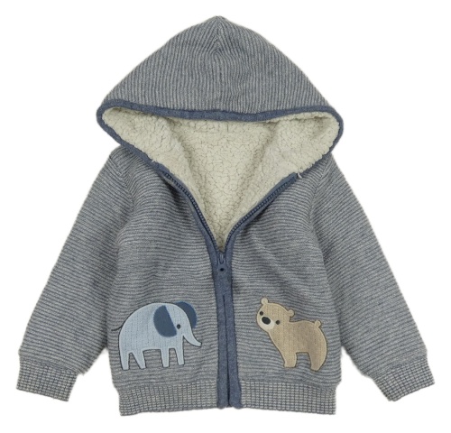 Modro-šedý pruhovaný zateplený propínací svetr se zvířaty a kapucí Nutmeg