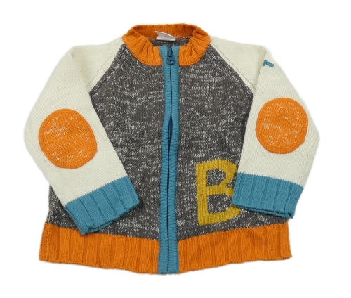 Tmavošedo-smetanový propínací svetr s písmenem