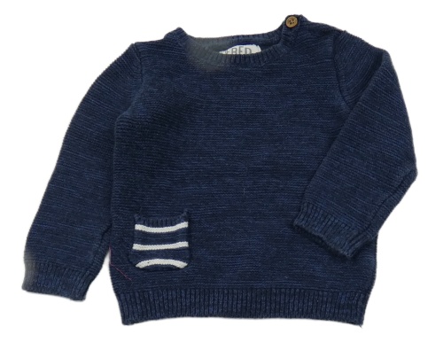 Tmavomodrý melírovaný svetr s pruhovanou kapsou F&F