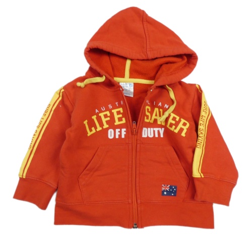 Červená propínací mikina s nápisem a kapucí