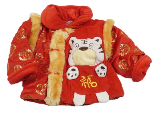 Červeno-zlatá sametová zateplená mikina s medvědem a huňatými lemy