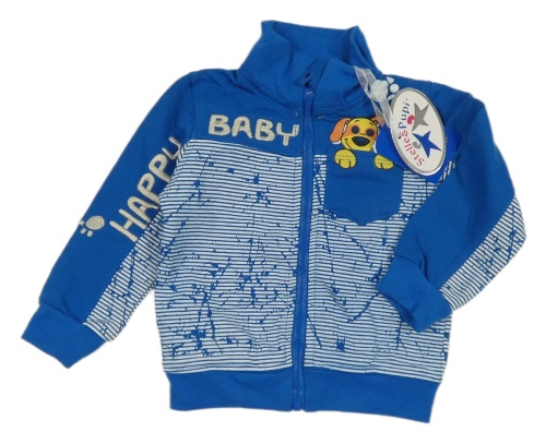 Nové - Modro-bílá propínací mikina se psem a pruhy