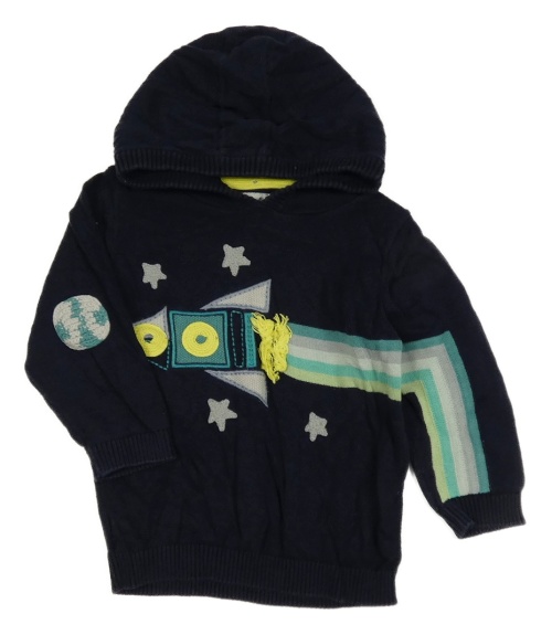 Tmavomodrý svetr s raketou a hvězdičkami a kapucí Next