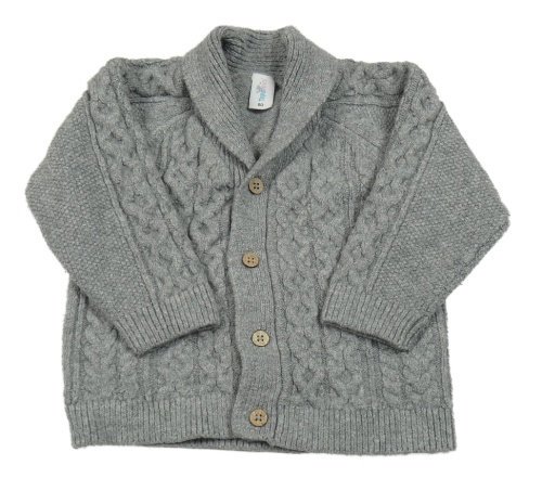 Šedý melírovaný vzorovaný vlněný propínací svetr s límečkem Topomini