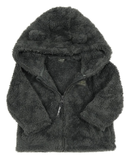 Šedá chlupatá propínací mikina s nášivkou a kapucí