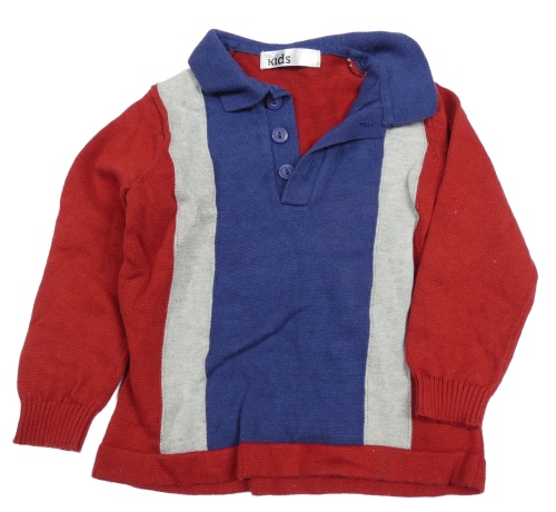 Červeno-šedo-tmavomodrý svetr s límečkem M&Co