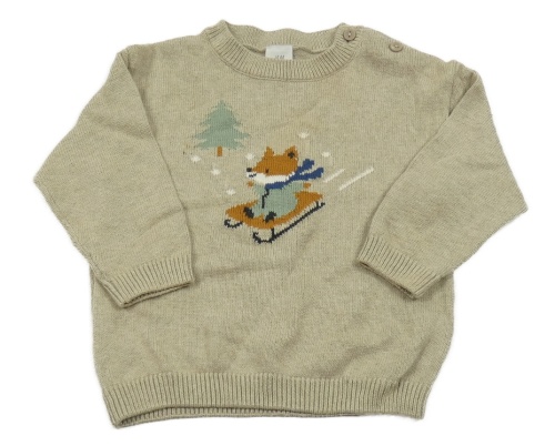 Béžovo-šedý melírovaný svetr s liškou a stromečkem H&M
