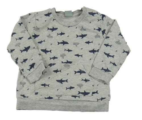 Šedá melírovaná mikina se žraloky a ponorkami Kanz