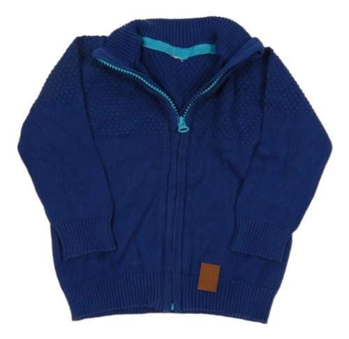 Tmavomodrý propínací svetr s nášivkou