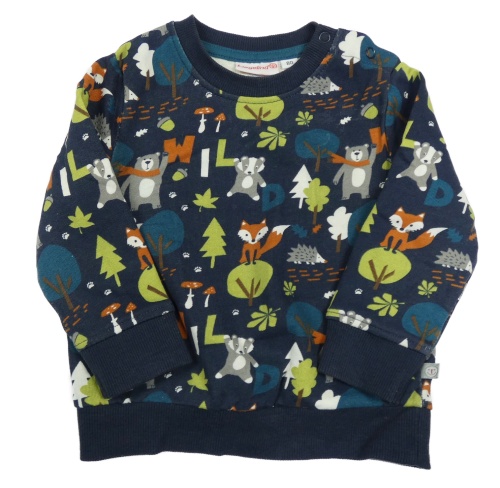 Tmavomodrá mikina se zvířátky a stromečky a muchomůrkami Liegelind