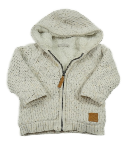 Světlebéžový vzorovaný zateplený propínací svetr s kapucí