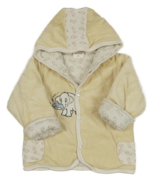 Béžová sametová zateplená propínací mikina se slonem a kapucí