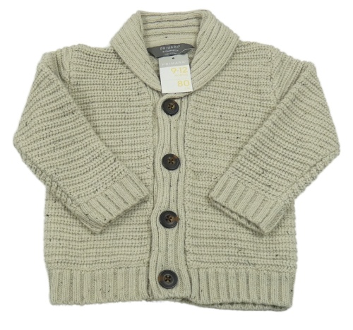 Nové - světlešedo/béžový melírovaný žebrovaný pletený propínací svetr s límečkem PRIMARK