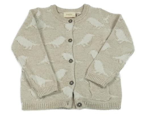 Béžový melírovaný propínací svetr s diny Lupilu