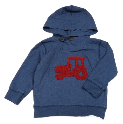 Tmavomodrá melírovaná mikina s traktorem a kapucí Topomini