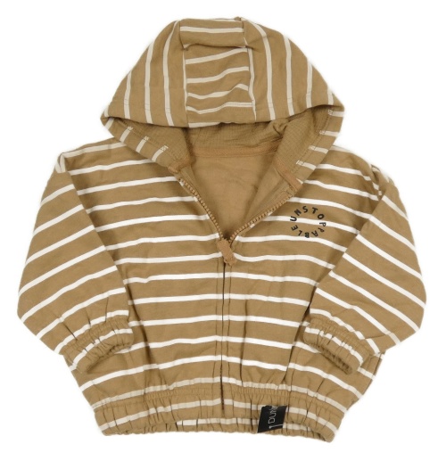 Nové - Hnědo-bílá pruhovaná propínací oversize mikina s kapucí dunnes