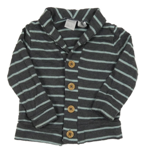 Tmavošedo-světlemodrá pruhovaná melírovaná vlněná propínací mikina s límečkem Teeny Weeny