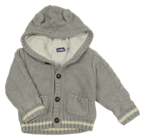 Šedý propínací podšitý svetr s kapucí Lupilu
