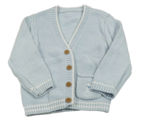 Světlemodrý propínací svetr s medvídkem a pruhy Nutmeg