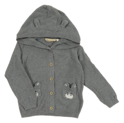 Šedý propínací svetr s čumáky a kapucí Lupilu