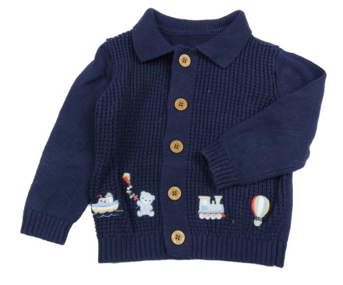 Tmavomodrý propínací svetr s obrázky Nutmeg