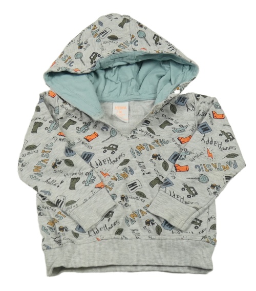 Světlešedá mikina s nápisy a obrázky a kapucí Hema