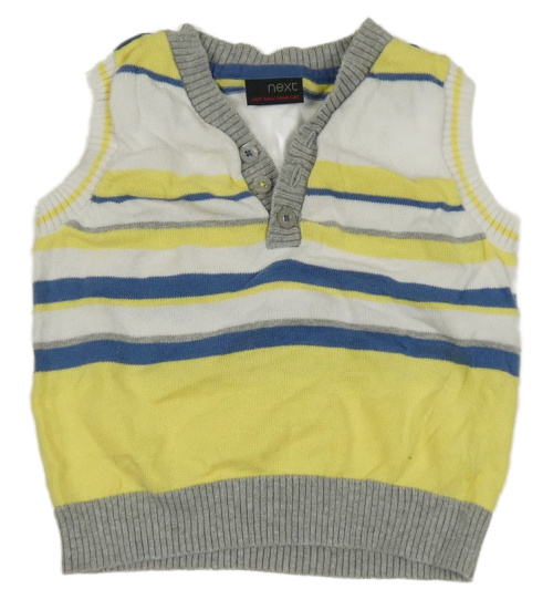 Žluto-modro-bílo-šedá pruhovaná pletená vesta Next