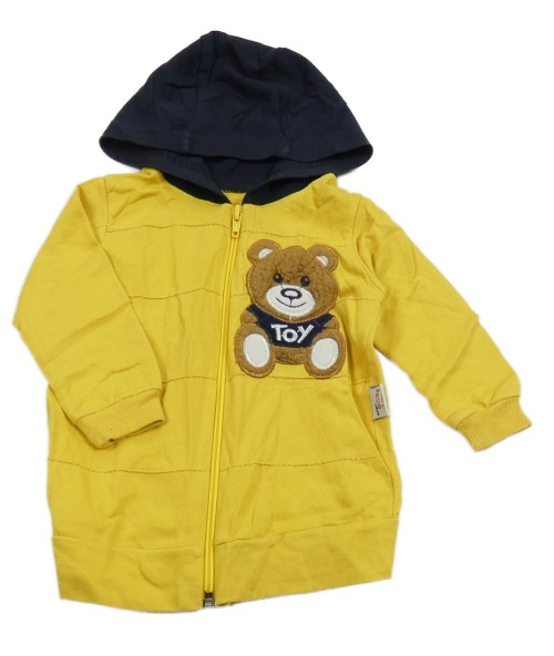 Žluto-tmavomodrá propínací mikina s medvídkem a kapucí