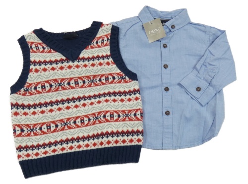 Nové - 2set - Tmavomodrá vzorovaná pletená vesta + košile Next