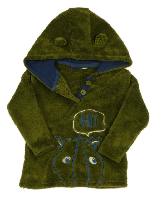 Khaki chlupatá mikina s nosorožcem a kapucí Lupilu