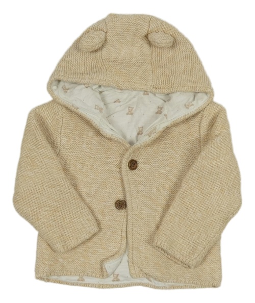 Béžovo-bílý melírovaný podšitý propínací svetr s kapucí Mothercare