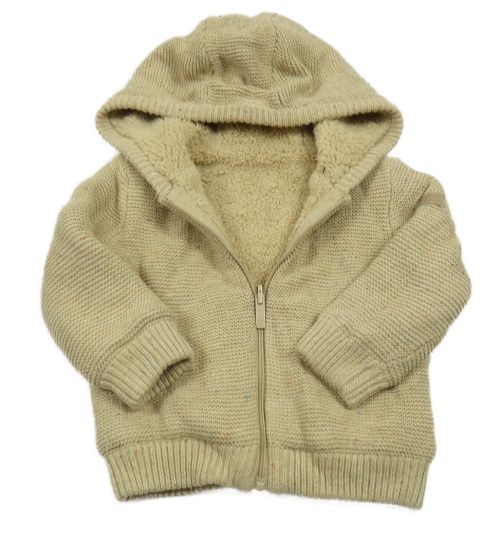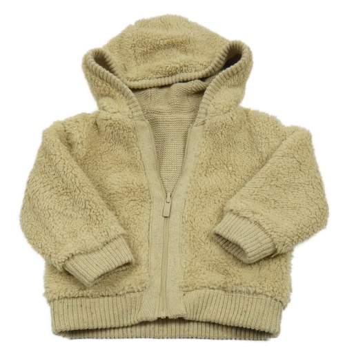 Béžová chlupatá propínací oboustranná mikina s kapucí