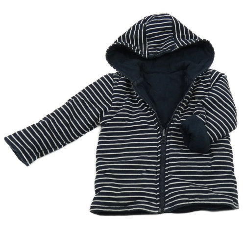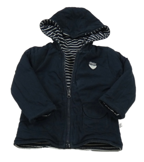 Tmavomodrá propínací oboustranná podšitá mikina s nášivkou a kapucí