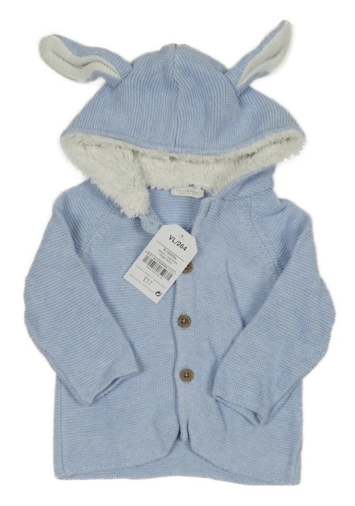 Nový - světlemodrý propínací svetr s kapucí a oušky Next